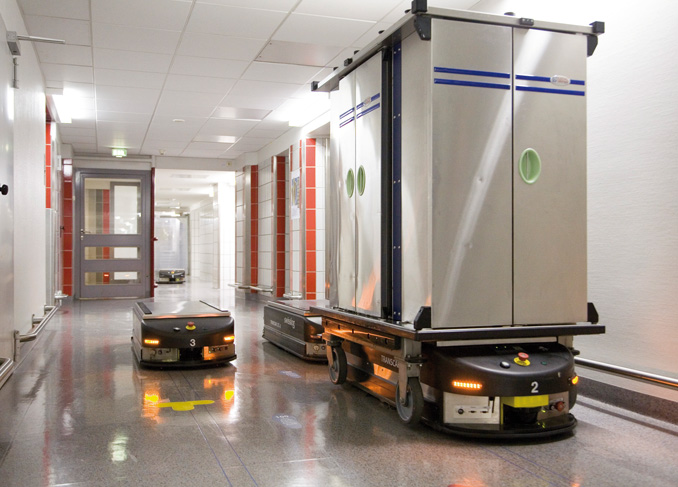 AGV智能导引系统可以实现多个货位智能搬运,其具备路线规划功能,货位实时监控及管理,并能与企业内的ERP、MES等系统进行指令及数据交互。AGV在其车载电源处于低电量时可实现自动充电功能。